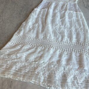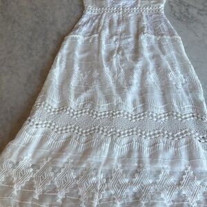 White embroidered lace midi dress. Intricate detail and fully lined, back zip, short sleeve, stunning, gorgeous dress.