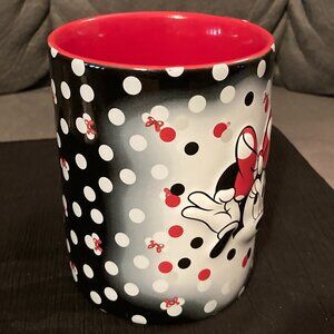 Disney Minnie Mouse Coffee Mug Cup-3D Likeness of Minnie Mouse with Black/White & Red Polka Dots-Red & White 3D Hair Bow on Handle. Holds up to 16 oz. Made in Thailand for Disney.