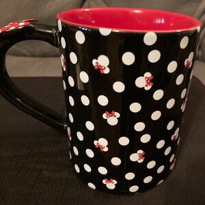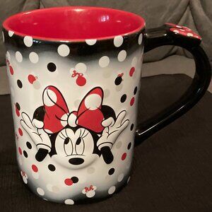 Disney Minnie Mouse Coffee Mug Cup-3D Black/White & Red Polka-Hair Bow on Handle