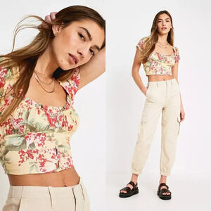 Urban Outfitters Amour Floral Cap Sleeve Cropped Top Size XS NWOT