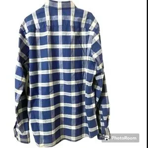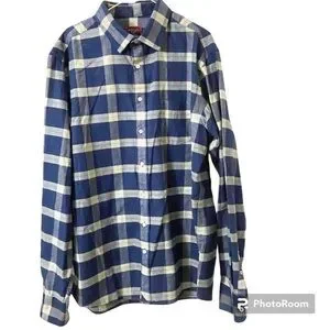 UNTUCKIt Vougeot Flannel Cotton Button Shirt Men’s X-LARGE-TALL LS Plaid. Colors are blue and white plaid. Elevate your style with this UNTUCKit Vougeot button shirt, perfect for any occasion from travel to workwear. The classic lumberjack plaid pattern in shades of blue will make you stand out in the crowd. This shirt is made of flannel cotton and features a relaxed fit with a collared neckline and button-down collar style.