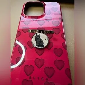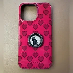 BURGA iPhone 14 Pro Max Heart Case with attached Black Cat Ring