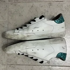 Golden Goose Super-Star Python Sneakers Blue Glitter Heel - Size 38