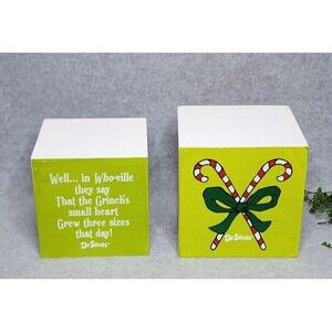 Grinch Christmas Story Stacking Boxes Cindy Lou Who Max The Dog 2 Pc Wooden NEW