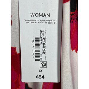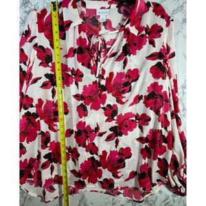 Liz Claiborne Womens Floral Print Blouse 1X Long Sleeve Pink Black Red Polyester