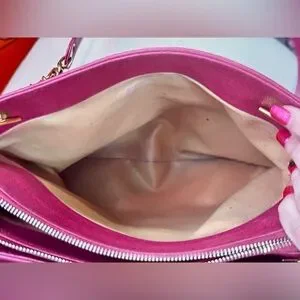 Please see pics for a detailed description. The bag is in really good condition. It’s from the 90’s. The inside is clean but there are tiny pink specks on the interior. I think it’s flaking from the color.
