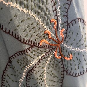 BCBGMAXAZIRA blue dress with floral detailing, side zipper and halter tie