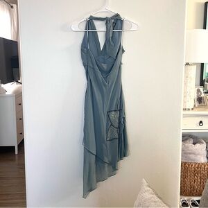 BCBG MAXAZIRA asymmetrical blue dress with floral detailing