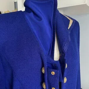 ST JOHN Evening Royal Blue Santana Knit Blazer Jacket Removable Collar