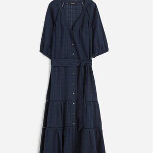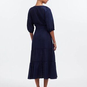 Madewell Tie-Waist Tiered Midi Dress in Windowpane Navy NEW NS139 Flowy