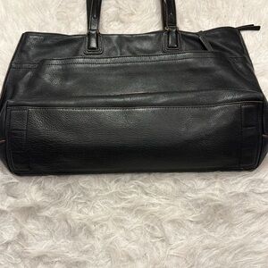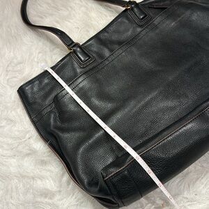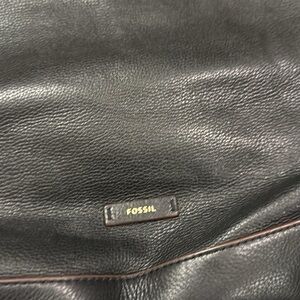 Fossil black bag/tote/ purse grain leather with gold hardware two outside pockets three inside pockets perfect for work tote length/ height 13” and width 18.5” in great condition and smoke free home.