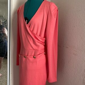 SOLD Coral Pink Bandage Bodycon Asymmetrical Knee-length studded dress Size XL