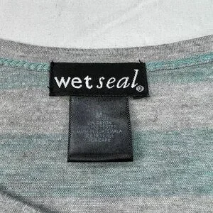 Wet Seal Blouse Womens Size Medium Blue Gray Striped 3/4 Sleeve