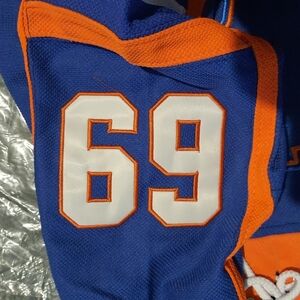 This new Doug Glatt Halifax Highlanders hockey jersey is a must-have for any fan of the movie Goon. The jersey is sealed and brand new in its original package, ensuring the highest quality for the fans. The classic design and stitched number and letter add authenticity and durability to the jersey. The jersey is designed with hockey sizing as per the attached sizing chart, ensuring the perfect fit for every fan.