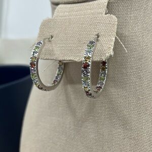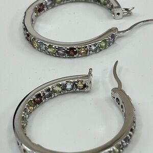Vintage 925 Sterling Silver Multicolor Gemstone Hoop Earrings