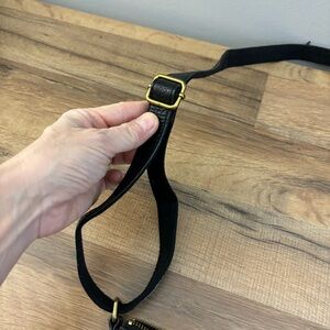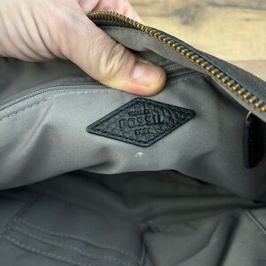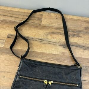 Fossil Elise Crossbody Bag Black Pebbled Leather Slim 3 Zipper Adjustable. Good condition. Clean. No holes. Adjustable crossbody strap.