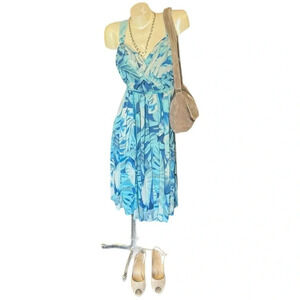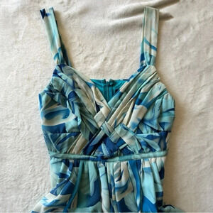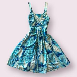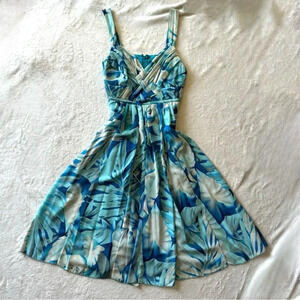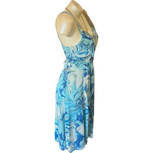 Gorgeous Signature by Robbie Bee Blue Tropical Floral Fairy Dress, Y2K Fairy Dress, Flowy Dress. Size 10. In excellent condition. It zips in back and also has a tie back style.