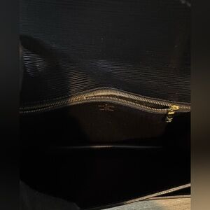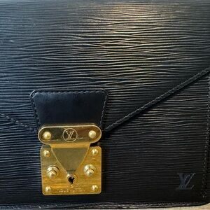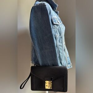 Elegance meets versatility with this vintage Louis Vuitton Epi Leather Clutch. Its sleek design is perfect for making a statement, whether you carry it as a clutch, sling it as a crossbody, or drape it over your shoulder. Complete with keys and an added unbranded chain for extra functionality, it’s ready for any occasion. Minor wear adds character, but note the interior zip pocket has retired from active duty (due to peeling). A timeless piece with plenty of flair left to give!
