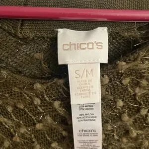 Super cute Chicos poncho . Olive green with a little sparkle. Great with jeans .. pants.. skirt or over a dress.
