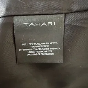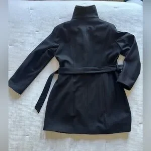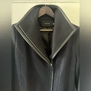 NWT Tahari Elaine Navy Blue Belted Wool Coat with Faux Leather Trim