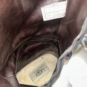 UGG Charcoal fray suede mid calf boots with braided leather accents. Brown rubber soles in great shape. Dress them up, dress them down, you'll rock it!