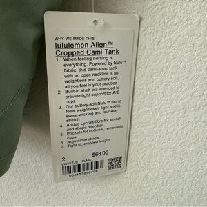 NWT Lululemon Align Cropped Cami Tank Palm Court Size 2
