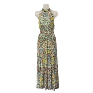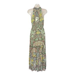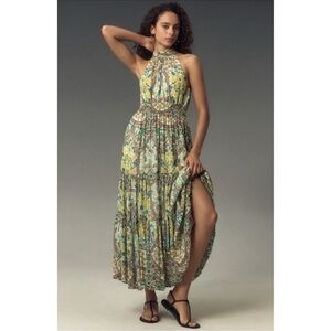 ANTHROPOLOGIE | NWT The Somerset Halter Maxi Dress in Green Motif, Size Large