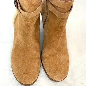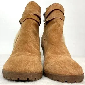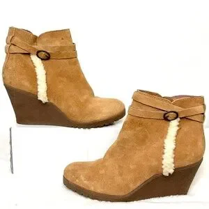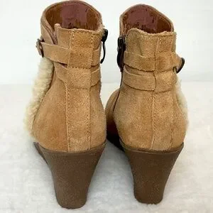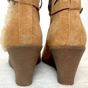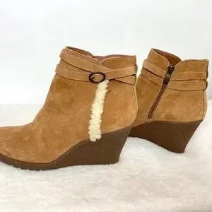 BJORNDAL AMY Fur Lined Brown Zip Up Ankle Wedge Suede Winter Booties Size 9