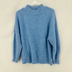 Gap women’s small Waffle-Knit Mockneck Sweater Blue Soft Cozy boxy pullover