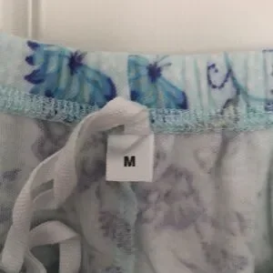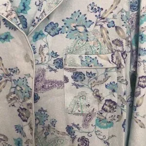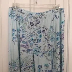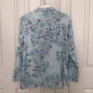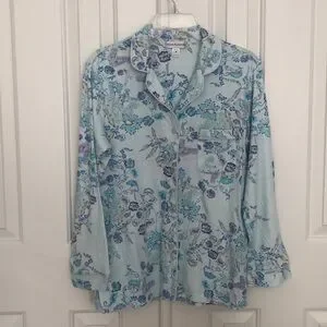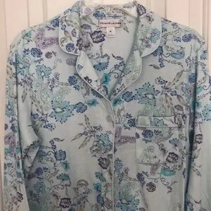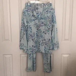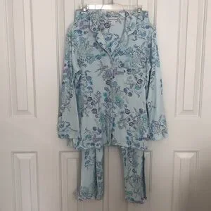 Two piece pajama set by Miss Elaine - floral pattern in shades of blue and purple - size Medium - EUC