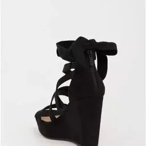 NWT Torrid Black Strappy Wrap Platform Wedge (WW). A classic wedge is given a trendy update with an ankle wrap design that allows you to tie to perfection.