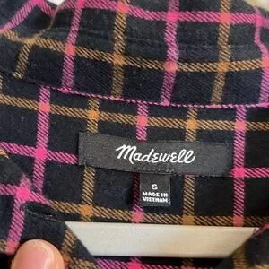 Madewell Flannel Westlake Shirt Size S Stoppard Plaid Pink Black Brown Boxy