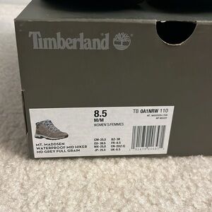 New, with original box, Timberland MT. Maddsen Waterproof Mid Hiker - Size 8.5M, Grey Full Grain Leather, TB 0A1NRW 110