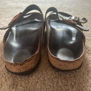 Comfortable brown leather sandals with adjustable straps. Perfect for casual wear.