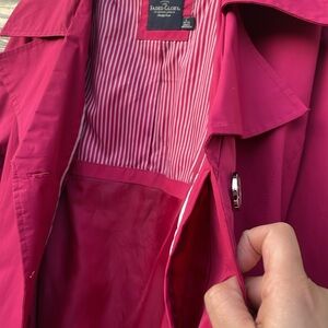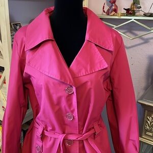 Like New!!! Is in perfect condition no damages at all. Belted jacket with buttons and pockets. Color is Berry Pink.