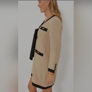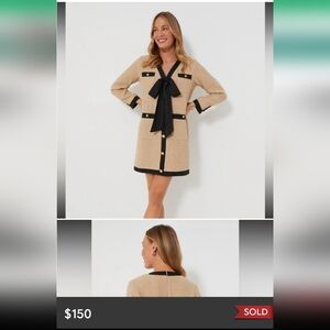 FINAL POMANDER PLACE Tan Coco Tweed Bow Dress Size Large NWOT