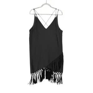 Women's Strappy Short Loose-Fit Special Occasion Nightlife Party Fringe Dress Size Large