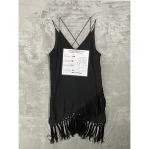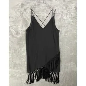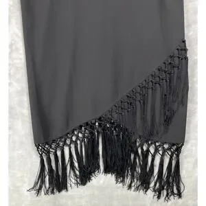 H&M V-Neck Cross Strap Wrap Skirt Fringe Evening Wear Party Dress Black Sz Large