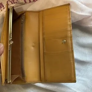 Center has indentation from kiss lock on leather