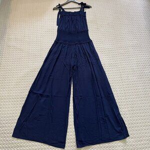 NWOT Tory Burch Smocked Shoulder-Tie Jumpsuit Size XS Navy Blue