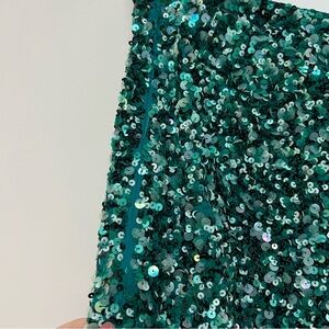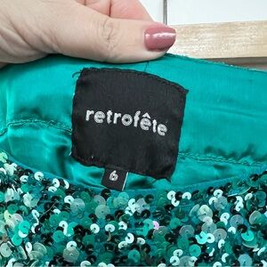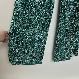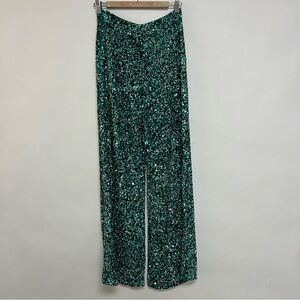 Retrofete Teal Sequin High Rise Wide Leg Pants Lyra Mermaid Size 6 $595