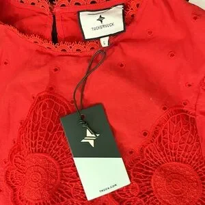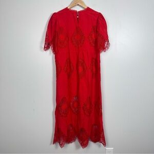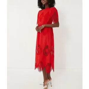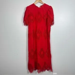Bold femininity is achieved in the striking and flirty midi moment that is the Catalina Dress. Delicate lace cutouts adorn the bodice and hemline in oversized shapes to bring a touch of abstract and authenticity to this classic concept dress. Finished off in a bright red hue that we love for party-ready dressing year-round, this relaxed yet romantic silhouette packs a punch while keeping it polished and pretty. Just add metallic heels and a clutch for a look that is sure to earn you some compliments!