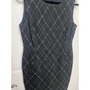 Lands' End Women's Windowpane Plaid Textured Stretch Sheath Dress Size 12 Petite