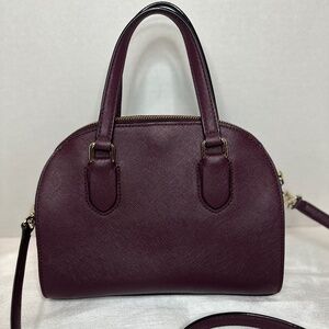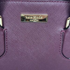 EUC Kate Spade Reiley Laurel Satchel in Plum color. Zip closure, removable/adjustable strap, 1 exterior magnetic compartment, 1 interior slip pocket. No rips, stains, or peeling. Hardware has very minimal wear. (seen in pictures). there is small staining from the zipper, (seen in pictures)