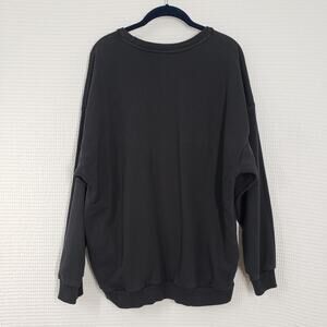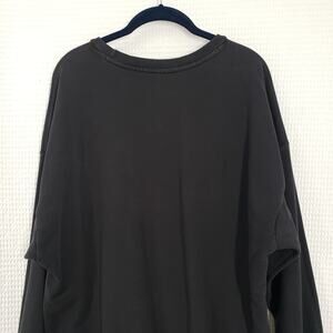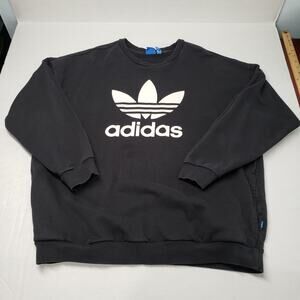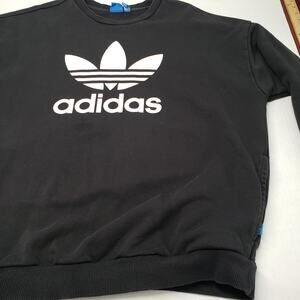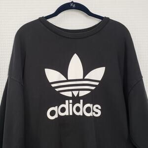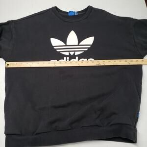 Adidas Sweatshirt Womens XL Black Crewneck Oversized Faded Pockets Casual Goth