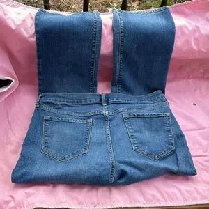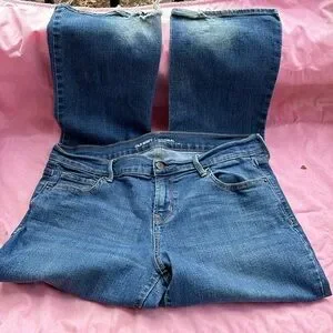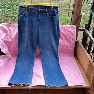 Old Navy Original Mid-Rise medium wash denim blue jeans are women’s size 12 Petite. The back of the hem and jeans are distressed and frayed. My oldest daughter is only 5’10.5” and so most jeans are too long, drag or she’s stepping on them fraying them. Jeans have belt loops, rivets, 5 pockets and close with a button and zipper. Made in Cambodia of 86% cotton 13% polyester 1% spandex. Waist 34” rise 10” and inseam 27” long.