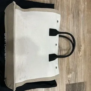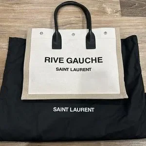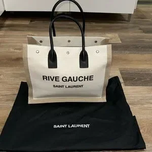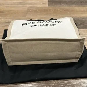 RIVE GAUCHE SMALL TOTE BAG IN LINEN AND LEATHER
