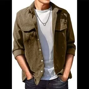 New Mens Lightweight Corduroy Jacket Button Closure Multiple Sizes