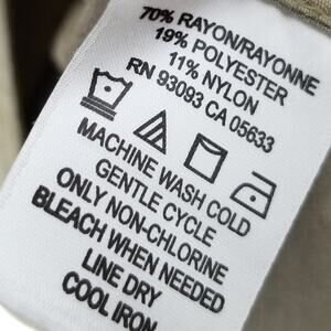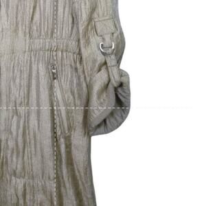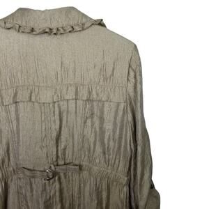 NIC + ZOE Metallic Longline Utility Jacket Ruffle Detail Roll Tab Sleeve Cinch Waist M.  70% rayon.  19% polyester. 11% nylon.
