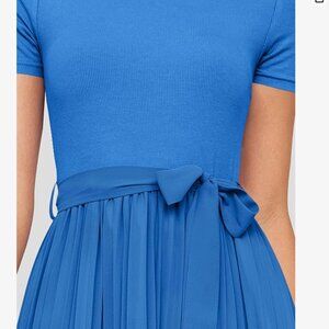 rib knit dress features a classic round neckline, short sleeves, solid color, elastic high waist and a detachable belt, swing a line style, the double layered chiffon skirt design.